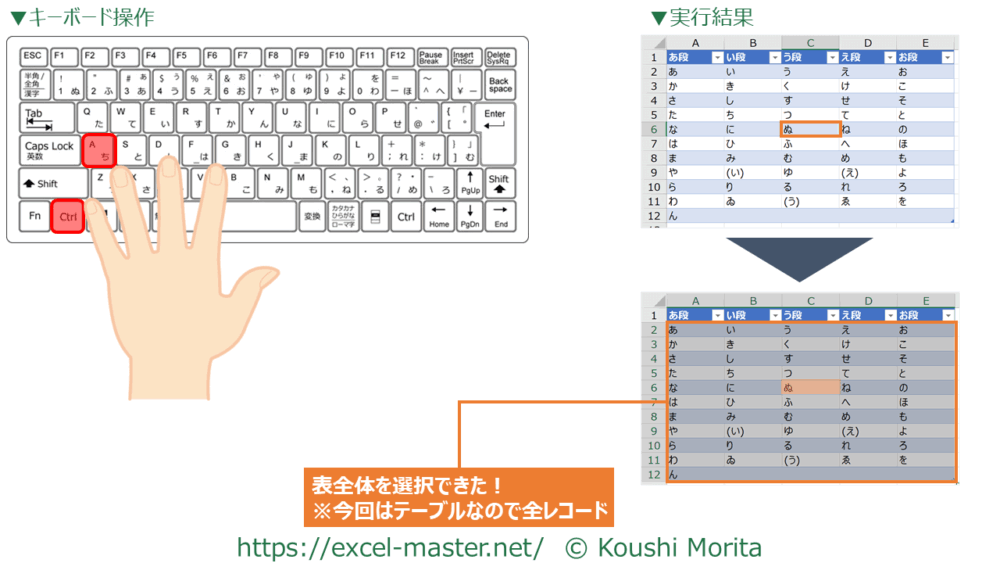 5.表全体を選択:「Ctrl」+「A」