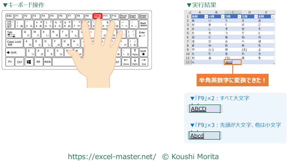 14.半角英数字へ変換:「F10」