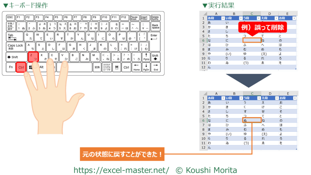 Excelに限らず、最も活用されるショートカットキーの代名詞的な存在です。