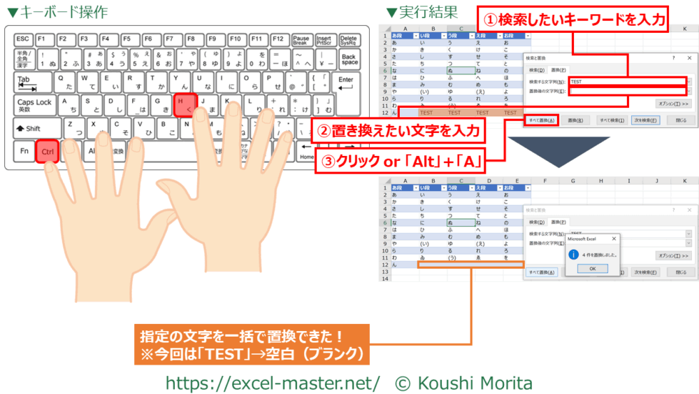 このショートカットキーを使うと、「置換」コマンドを活用できます。