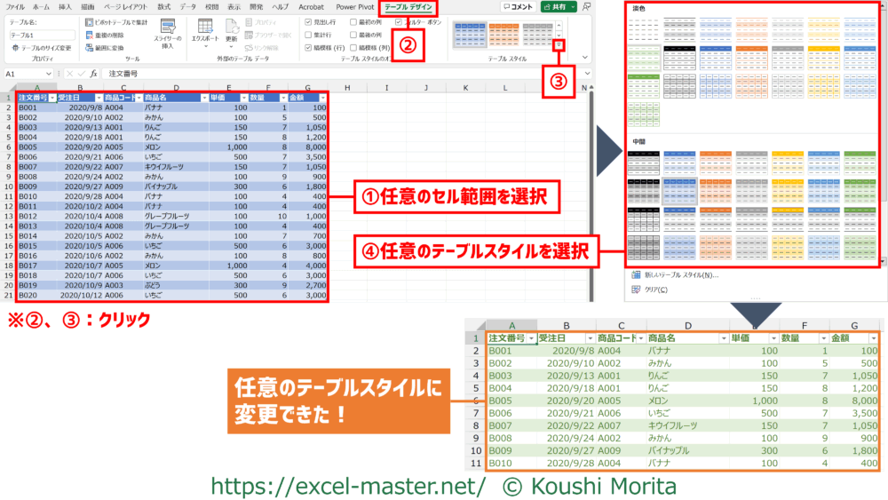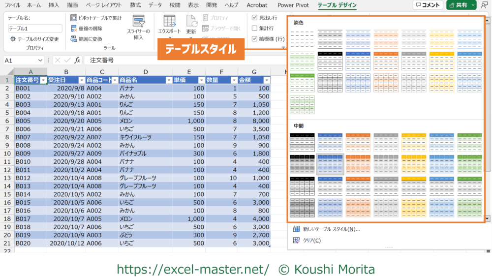 - 任意のテーブルスタイルを選択