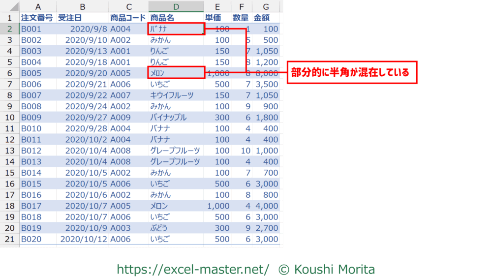 よって、事前に全角もしくは半角へ表記を統一することが必要です。