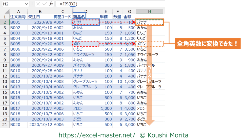 【関数】英数カナ文字を半角→全角へ変換できる「JIS」の使い方