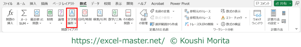 あくまで参考情報となりますが、JISはリボン「数式」タブの関数ライブラリの「文字列操作」に分類されています。