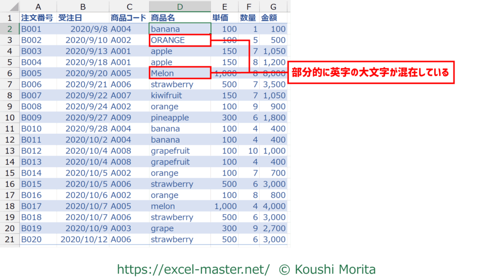 よって、事前に英字を大文字もしくは小文字へ表記を統一することが必要です。