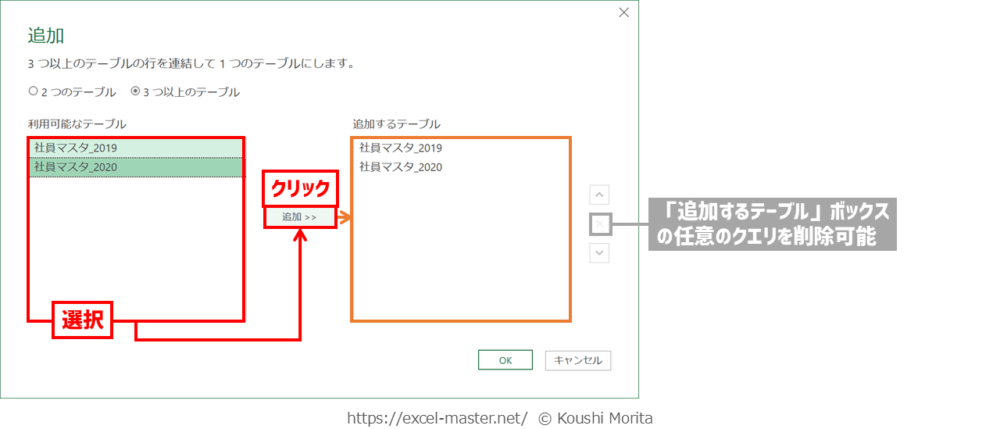 ※今回は「社員マスタ_2019」クエリと「社員マスタ_2020」クエリ - 「OK」をクリック