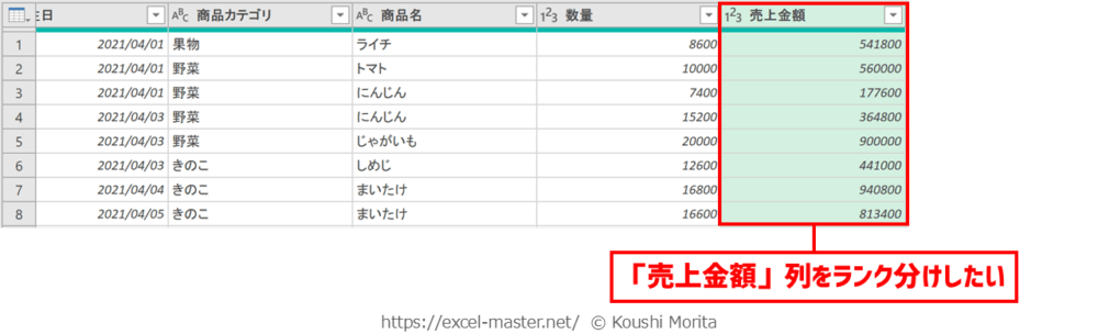 表の「売上金額」列に応じてランク分け等、条件分岐を行いたいです。
