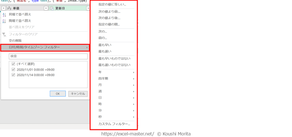 日付/時刻フィルター
