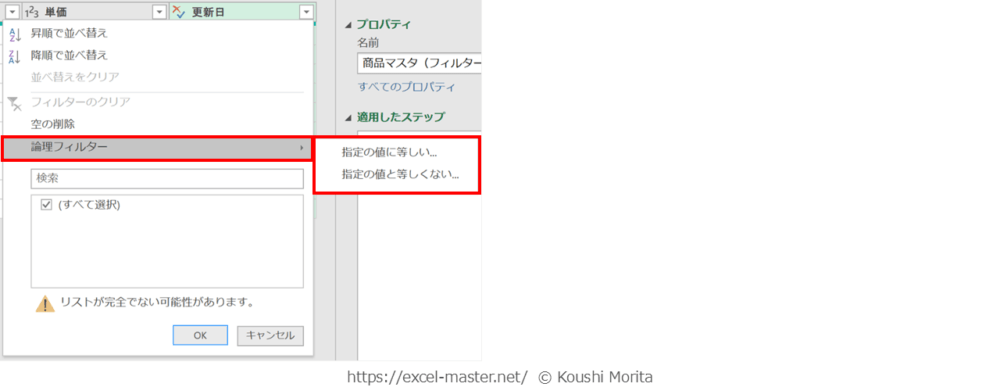 手順①のステップ名は、フィルターのデフォルトの名前(自身でリネームしている場合は別表記)。