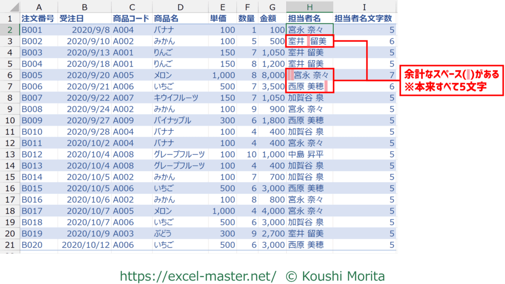 よって、事前に余計なスペースは削除し、表記を統一することが必要です。