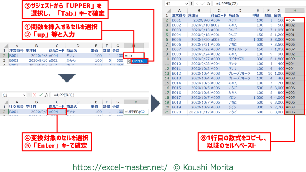 その場合は、関数の「UPPER」を活用すると良いですよ!