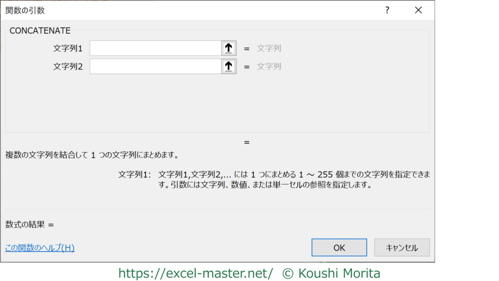 | 文字列2 | - | 文字列 | 連結対象の値またはセルを指定します。 |