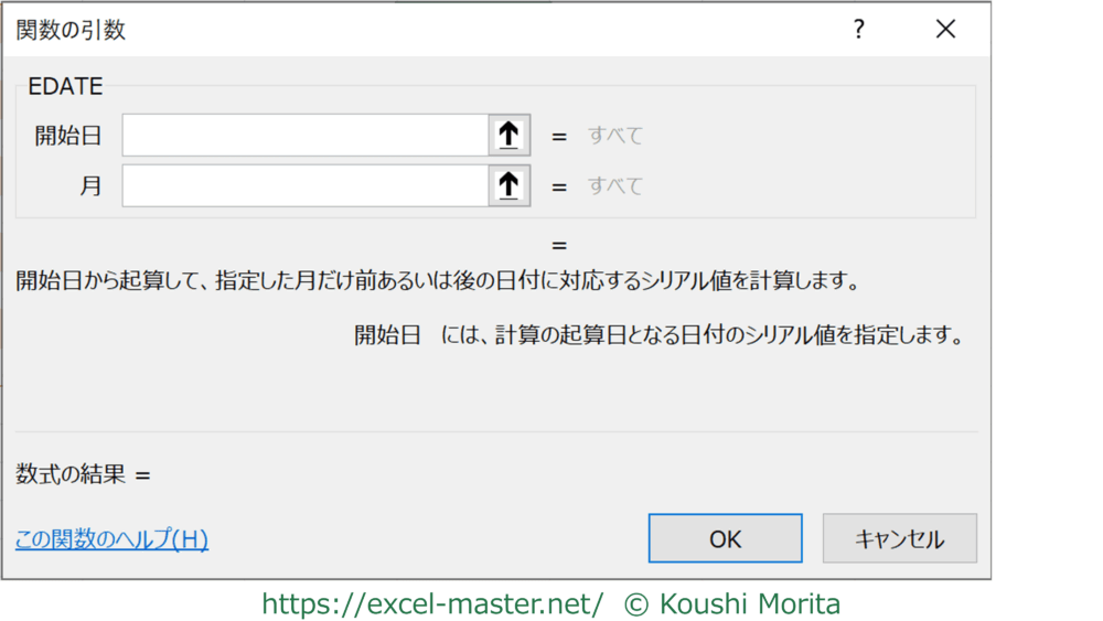 | 開始日 | ○ | すべて | 起算日を示す単一セル(値が日付)を指定します。 |
