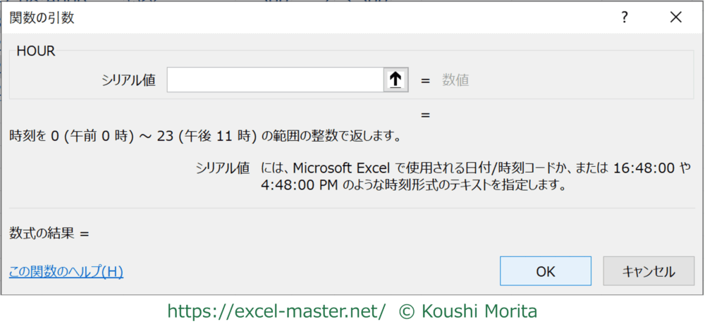 HOURを使うことで、時刻(シリアル値)から「時間」を整数で取得できます。