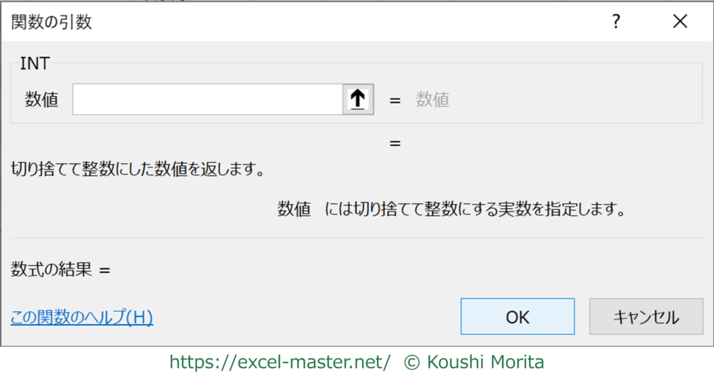 INTは整数限定の切り捨てのため、必要な引数が1つのみです(詳細は「INTの構文」を参照)。