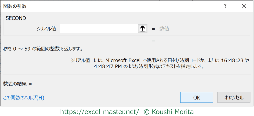 SECONDを使うことで、時刻(シリアル値)から「秒」を整数で取得できます。
