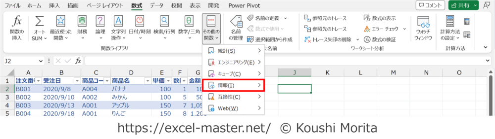 あくまで参考情報となりますが、TYPEはリボン「数式」タブの関数ライブラリの「情報」に分類されています。