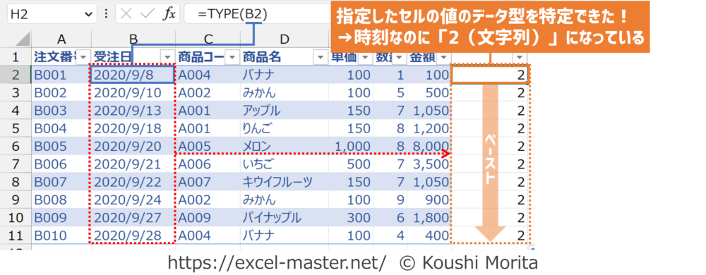 こんな場合、関数の「TYPE」を使うことで、セルの値のデータ型を特定することが可能となります。