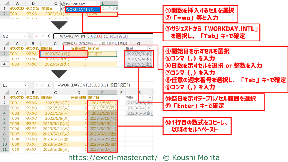 はじめに 参考記事 関数の概要については以下の記事をご参照ください。 開始日+日数で「終了日」を算出したい、かつ土日祝休みの場合は「WORKDAY」が有効 実務では、タスクの期日等の「終了日」を計算しておくことは非常に重 …
