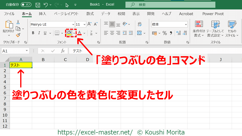 セルの背景のことを「塗りつぶし」と言います。