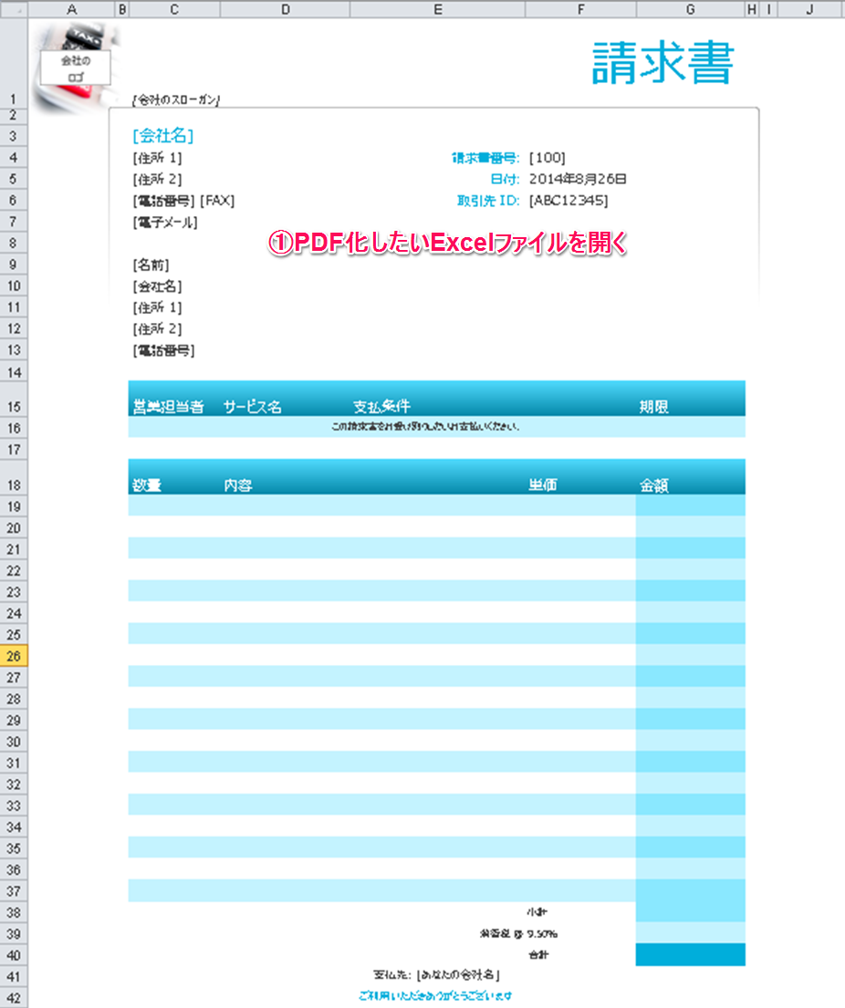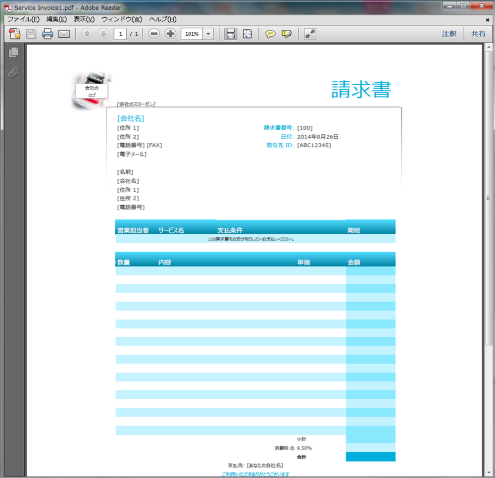 ファイルを開くと、指定したExcelファイルが綺麗にPDF化されていることが確認できました。