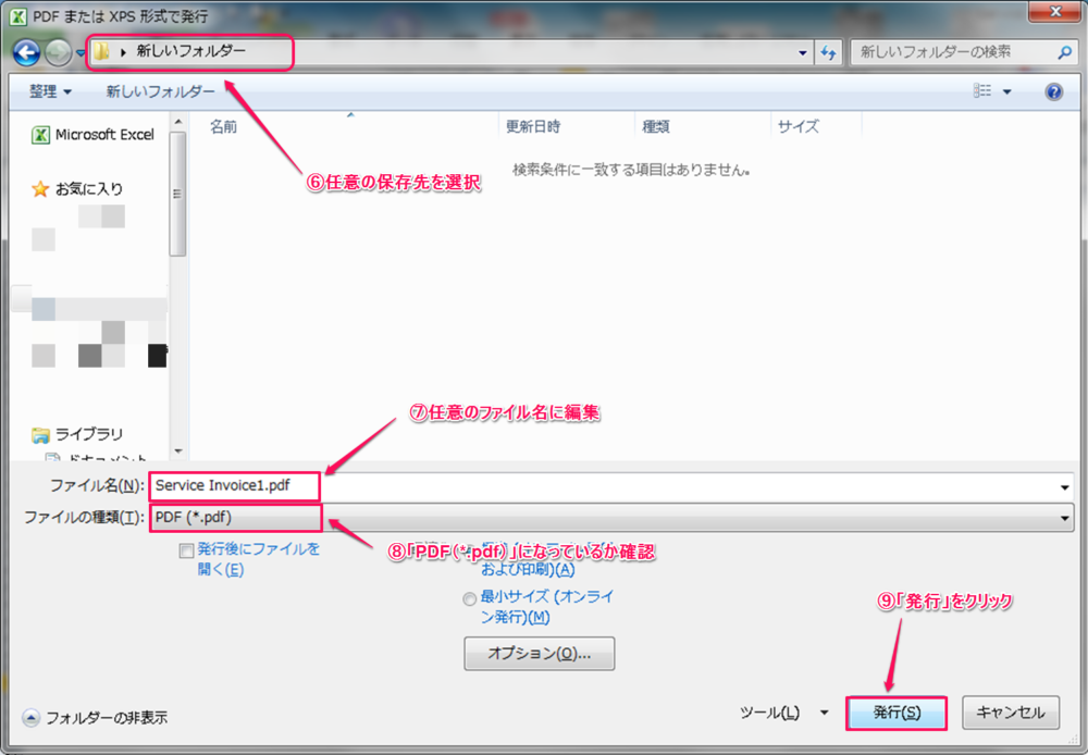 8. ファイル種類が「PDF(*.pdf)」になっているか確認