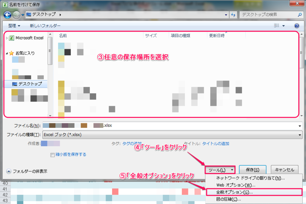 パスワードの設定方法は「書き込みパスワード」についてもExcel2003までとは異なっておりますので、どこで設定するのかお困りの方も多かったでしょう。(私も軽く悩みました。。)