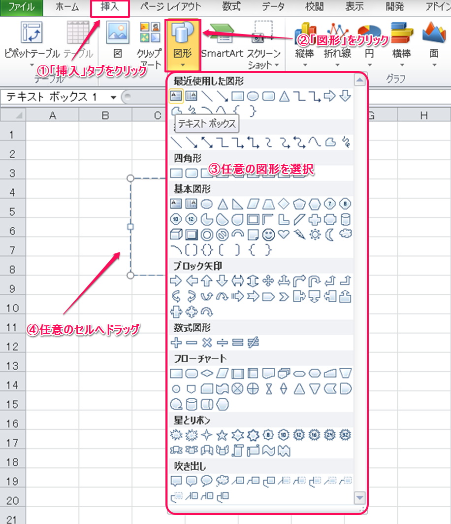 - 「図形」をクリック