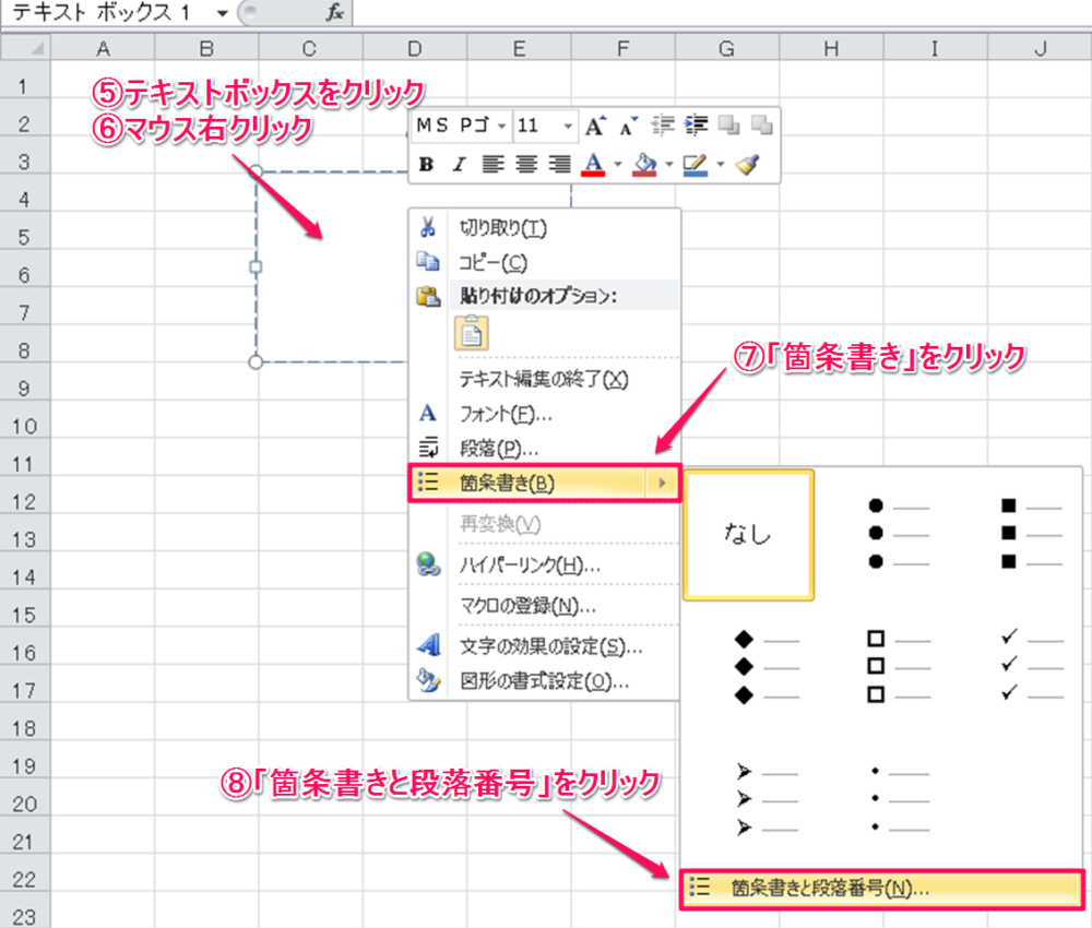 テキストボックスに箇条書きを設定する方法 | Excelを制する者は人生を制す ~No Excel No Life~
