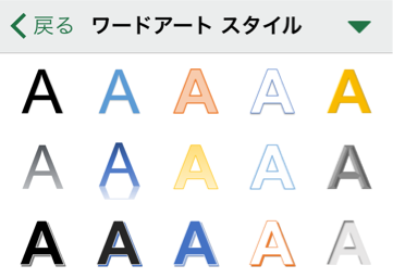 選択できる色の一覧は下記「【参考】選択できる図形のワードアートスタイル一覧」をご参照ください。