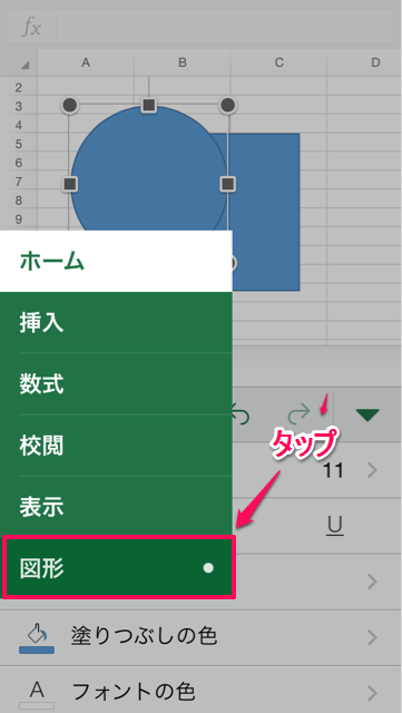 4. 「図形」タブをタップ