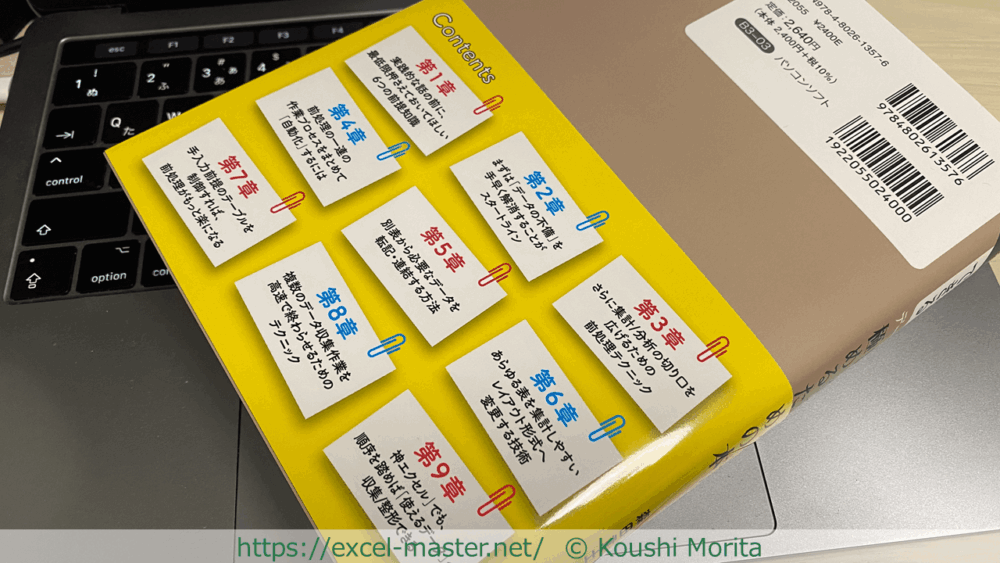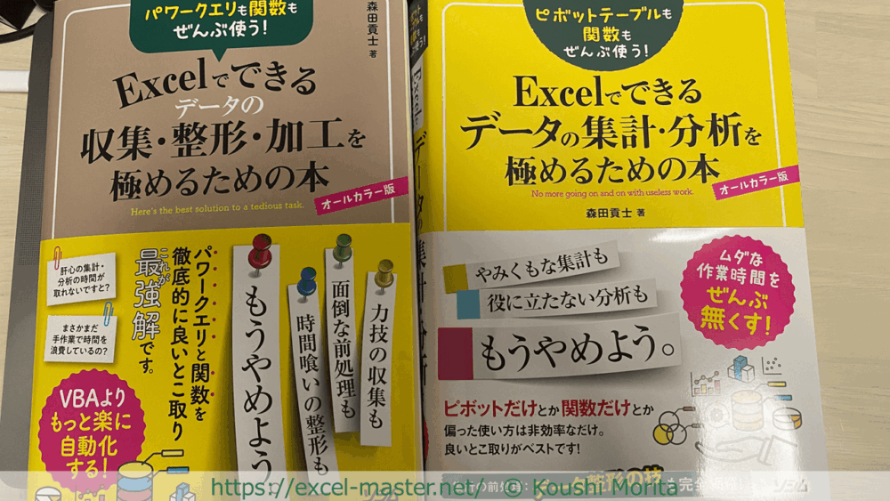 タイトルは「パワークエリも関数もぜんぶ使う! Excelでできるデータの収集・整形・加工を極めるための本」です。(出版社はソシムさん)