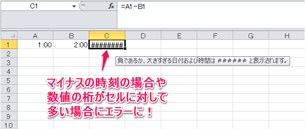 2.の原因の場合は「1904年から計算する」という設定にすると日付や時刻もマイナス表記が可能になります。